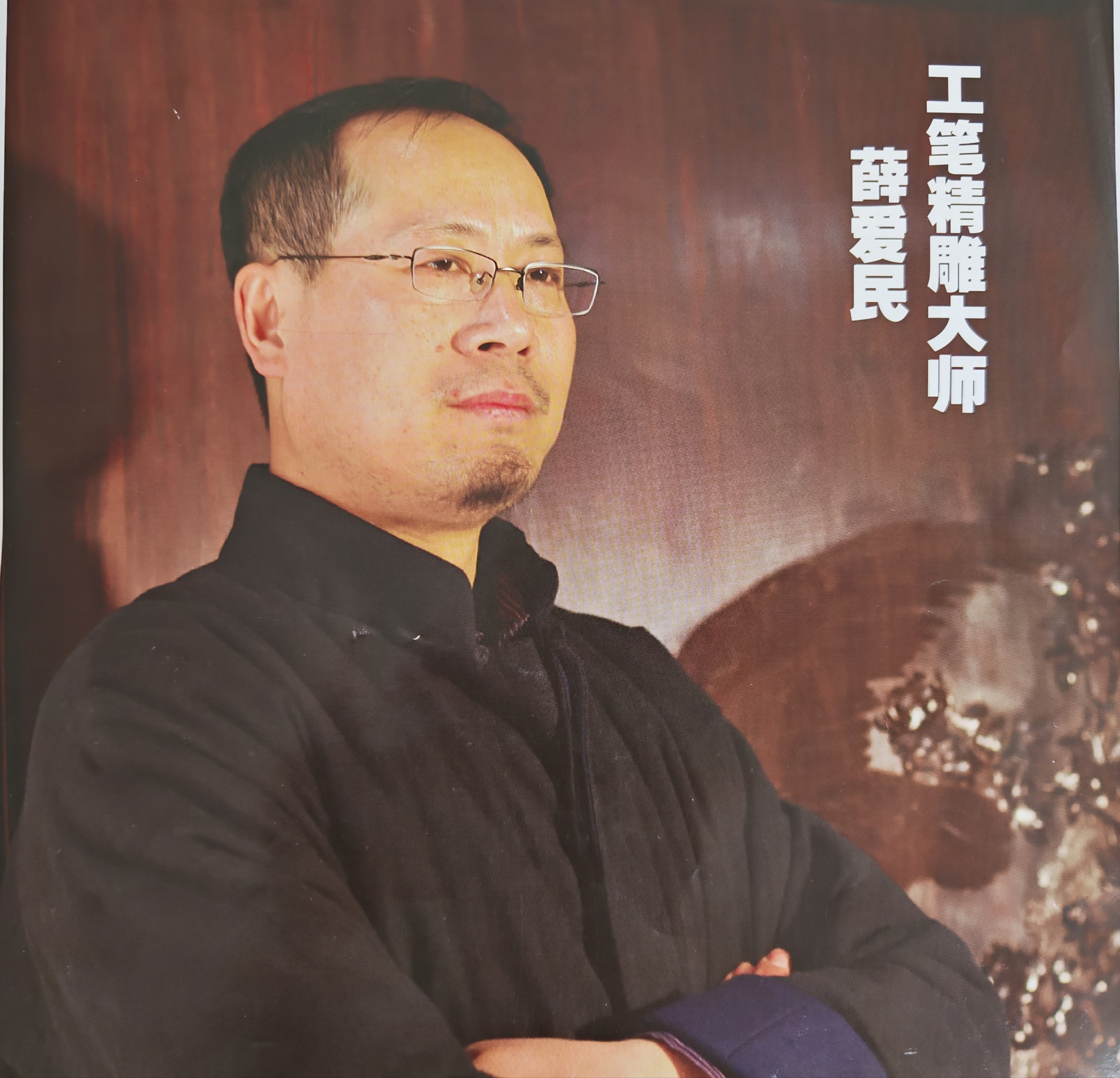 薛爱民是中华木作大师、工笔檀雕创始人,现任江苏紫翔龙浅浮雕研究所首席雕刻工艺师和研究员。然而,他的艺术之路远比常人艰难——六岁时因输液事故双耳失聪,从此生活在无声世界之中。有人说,上帝为你关上一扇门,必定会为你打开一扇窗。在如皋市聋哑学校,14岁的薛爱民邂逅硬木雕刻,从此一发不可收。6年学校课程、3年中专苦练,仅靠眼睛观察和双手摸索掌握技艺。为精进技术,他辗转多地学艺,遇到他这一生极为重要的授业恩师、国家工艺美术大师顾永琪,在师父的启发式指导下,薛爱民雕刻技艺实现了质的飞跃。他不仅克服了聋哑障碍,更创新性地将工笔白描融入木雕,开创“工笔浮雕”技法,以极致细腻的雕刻填补行业空白。从沉默的学徒到行业大师,他付出的艰辛是普通艺术家的数倍,最终用双手在木屑纷飞中镌刻出震撼人心的艺术生命。