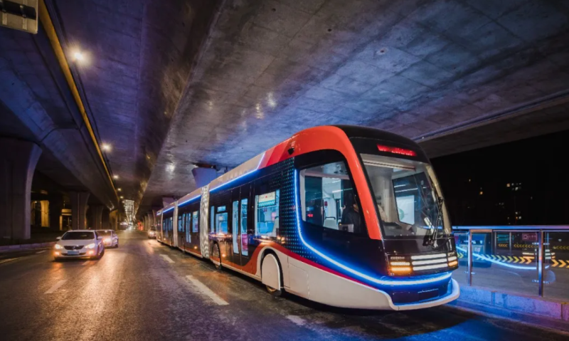 盐城市BRT/SRT中运量公交建设工程以城区内客流主走廊的公交快速通道为核心,以高铁站、飞机场、客运枢纽等为节点,打破过去传统公共交通针对一站、一线的建设理念,结合全新的虚拟轨道快运技术,创新“点—线—环—网”中运量公共交通新模式。