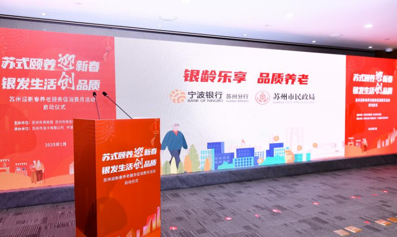 为积极实施应对人口老龄化国家战略,进一步推动养老服务高质量发展,挖掘养老服务消费潜力,在新春来临之际,宁波银行苏州分行积极组织参与了“苏式颐养迎新春 银发生活创品质”苏州迎新春养老服务促消费月活动。苏州市人民政府副市长查颖冬、副秘书长盛乐,市民政局局长陈正峰、副局长严强,苏州市长三角数字金融产业研究中心主任朱瑛、苏州市民卡有限公司总经理惠飞,宁波银行苏州分行行长沈佳等领导出席启动仪式。各县市民政部门,养老服务促消费月承办企业、商户和客户代表、老年代表等超百余人参加。