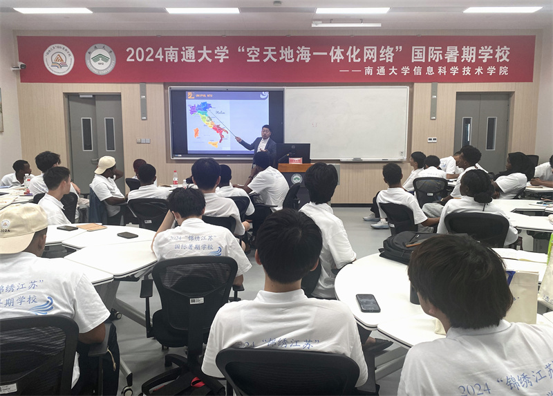 新华报业·新江苏讯(通讯员范苏 记者万晨)7月24日,南通大学2024年“锦绣江苏——空天地海一体化网络”国际暑期学校顺利结业。该项目由江苏省教育厅主办、南通大学承办,涵盖来自中国、孟加拉、埃塞俄比亚、乌干达、利比里亚、津巴布韦、摩洛哥、刚果、巴基斯坦的47名中外学生,通过讲座、参观等方式加强中外学生对通信领域最新发展前沿以及中国传统文化的认知,增进国际青年间学术和文化的交流。