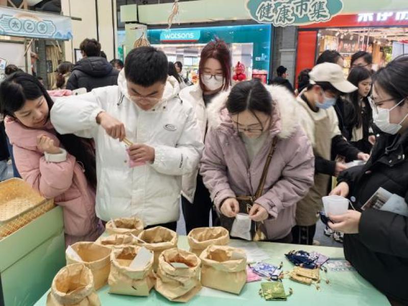 同样受欢迎的还有中药古法香囊DIY,大家挑选中药药材,自行DIY养生香囊。旁边的养生茶品鉴区同样受到很多年轻人的喜爱,当天正是冬至,在这寒冷的冬日喝上一杯口感丰富的养生茶饮,舒心又暖身。人见人爱的小丑表演给大家带来了欢笑和惊喜,诙谐幽默的表演,让大人小孩都忍俊不禁,和小朋友们欢乐互动,更是趣味十足。
