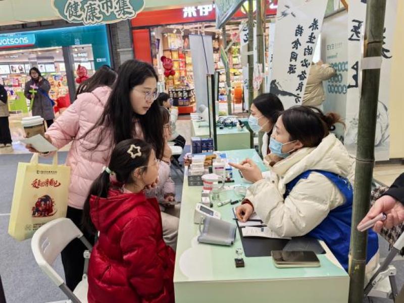 本次活动围绕“悦己”IP展开,联合本地大健康行业品牌:茀莱堡口腔、康美美容、爱尔眼科、太乙堂,开展线下健康市集活动,现场中医诊疗、口腔检查、眼疾筛查、美容咨询等义诊服务,以“集章打卡”方式,吸引市民前往义诊区咨询打卡,助力各合作品牌线下获客。太乙堂的资深中医现场坐诊,把脉问诊,望闻问切,认真仔细诊断,为市民朋友们提供适合的调养方案。