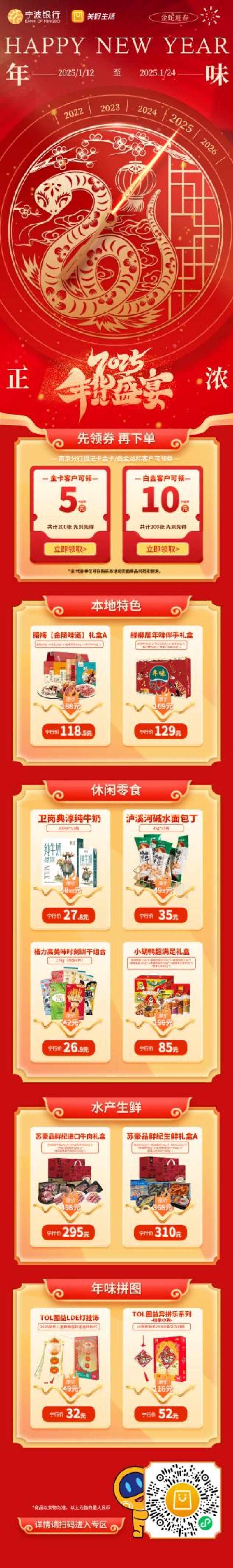 为了进一步丰富消费者购物体验,宁波银行南京分行精心挑选了众多知名品牌和优质商品,涵盖了食品、饮品、家居用品、儿童玩具等多个领域。活动期间,客户可以在美好生活平台上享受到超值折扣、满减优惠、赠品等多重福利。此外,平台还将推出限时秒杀、爆款推荐等特色活动,让客户在享受购物乐趣的同时,也能感受到浓浓的年味。