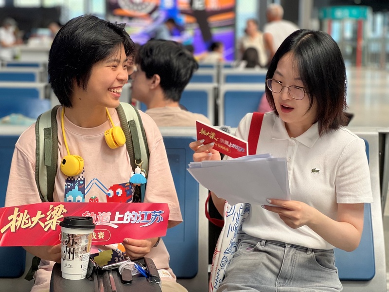 历经一上午激烈答题,来自福建的“05后”江凌微以8题满分的佳绩摘得一等奖——高铁模型。赛后,她举着模型打卡晒照:“我在武汉上学,乘高铁来到江苏,以南京为起点,一路打卡了扬州、苏州、淮安,高铁换乘时体会到江苏高铁的四通八达和周到服务。”