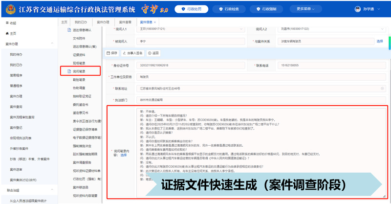 南京、苏州、沿海支队开展场景生态拓展,聚焦知识管理、智能指标分析、流程自动化等多场景应用,实现审批、监管、服务全链条智能化。南京支队线上办理场景自2024年12月28日上线使用以来,已完成915起案件的线上办理,罚款金额累计11.8万元,案件平均处理效率提升50%,累计减少群众往返窗口900余人次,无一件行政复议和诉讼案件。苏州支队执法案卷生成场景已选择三种类型约8500个案件进行QA对及思维链转化,目前QA对及思维链已经提交一线执法人员进行校核。宁杭支队基于人工智能大模型中自然语言处理、数据分析能力,自动识别并归类执法单据信息,深入挖掘数据中共性问题,提供执法文书审查,助力相关部门优化服务流程、提升服务质量。
