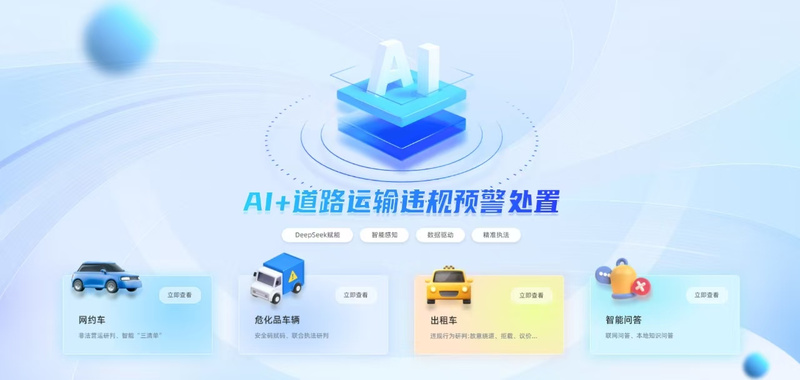 在道路执法场景中,连云港支队基于前端感知、车辆轨迹、历史信息等数据,依托DeepSeek等AI大模型,对已初步研判出的道路运输违规预警信息进行深入分析梳理过滤,形成分级分类处置清单,指导一线执法单元更好开展重点执法和日常监管,切实提升预警处置精准度和执法监管成效。