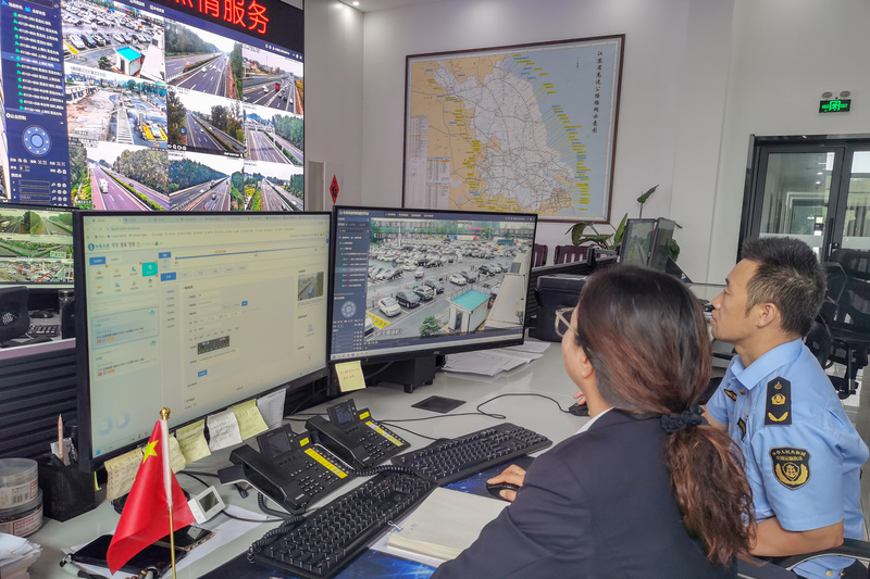 每逢节假日,东部高速作为江苏沿海地区高速主通道,南来北往的车辆络绎不绝。走进东部公司综合调度指挥中心,调度指挥、业务稽查、安全监管、运维保障、联动处置、综合管理等六大版块的值班人员正在有条不紊的忙碌着。透过前方的大屏幕可以清晰地看到各收费站、服务区的通行运营情况,道路主线、互通枢纽的车辆轨迹、速度、事件等信息一目了然。