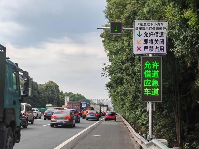 应急车道开放后,还要让驾驶员“敢走、会看”。江苏交通综合执法部门采取多重引导方式:一方面,在枢纽前方龙门架增设定向喇叭,依托实时路况监测,在车多缓行时循环播放提示信息;另一方面,在重点区域前方同步增设“应急车道允许通行”“应急车道临时开放”等提示牌,让驾驶员明确得知应急车道可临时通行。