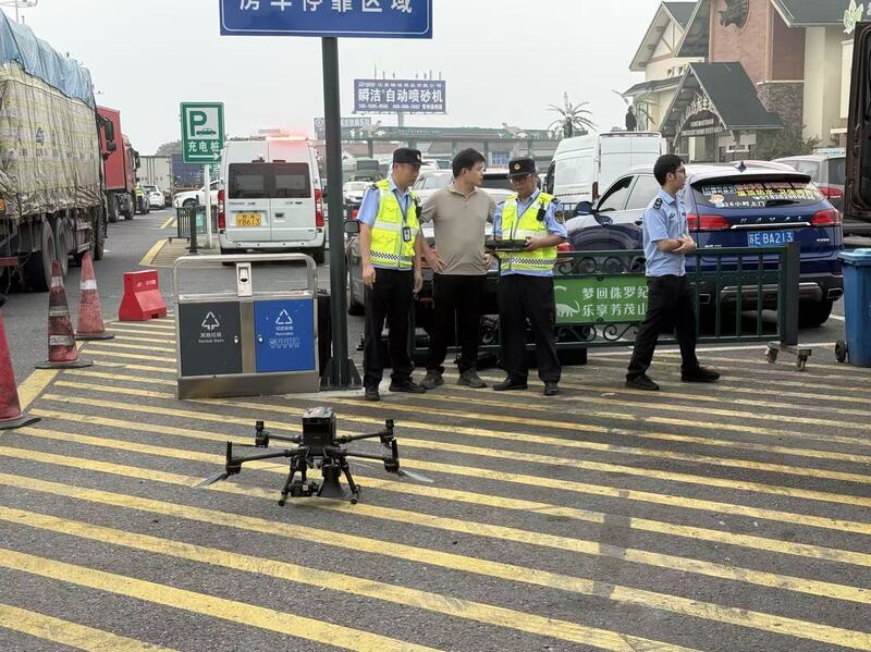 “今天流量比平日增加40%,我们早上9点起飞,已持续飞行3小时,在车流高峰期开展高频次巡查。”李洪文一边操作手柄,一边介绍,“无人机挂载高音喇叭、变焦摄像头和流量监测模块,相当于‘空中执法岗亭’,发现违停、追尾事故,第一时间喊话、第一时间处置。”