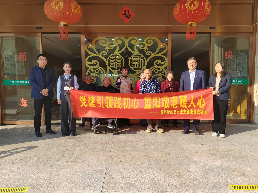 泰州新区支行党支部联合分行运营管理部、金融市场部党支部党员代表来到江苏亿慈康复养老中心,与康养中心的老人们亲切交流,详细询问他们的生活起居与身体状况,叮嘱老人们注意添衣保暖、保重身体,并向他们致以重阳节的美好祝福,老人们脸上洋溢着幸福的笑容。靖江支行党支部联合靖城街道前进社区党委开展重阳节志愿者服务,聚焦老年群体高发的非法集资风险,结合真实诈骗案例,用 “大白话” 拆解 “高息理财”“养老投资” 等骗局,传授识别方法,守护老人的 “养老钱”;手工重阳糕互动区里,老人们围坐一起揉面、撒果料,在协作中重温节日快乐,欢声笑语满溢现场。