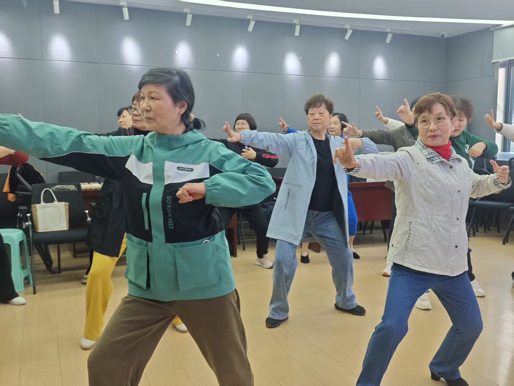 练习过程中,邻里之间相互交流动作心得,彼此提醒纠正姿势,原本互不熟悉的居民在共同学习中逐渐熟络,活动室内充满欢声笑语。