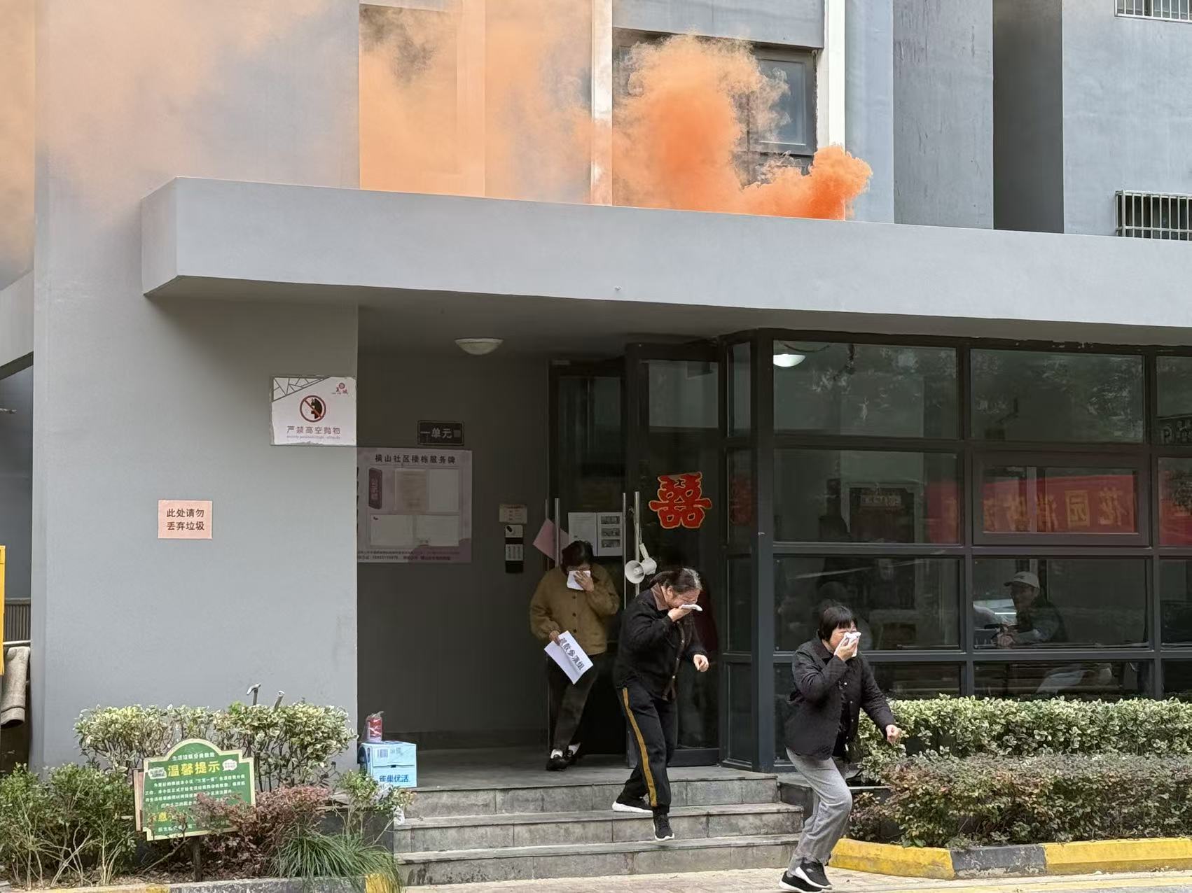 横山社区联合新主城物业开展消防演习,模拟火情在9号楼2层“突发”,浓烟迅速蔓延。物业应急小分队迅速响应,拉起警戒带、连接水带、组织疏散,居民们用湿毛巾捂住口鼻,弯腰低姿,仅用3分钟全部撤离至安全区域。紧随其后的是灭火器实操环节,专业人员在现场演示“提、拔、握、压”四字要诀,居民纷纷上前体验,真正实现从“知道”到“会用”的转变。