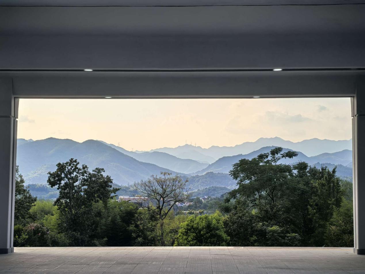 《千里江山图》。2024年9月5日,拍摄于宁国南站。站在宁国南高铁站台上,透过巨大的“卷轴”,一幅绝美的自然画卷在眼前徐徐展开。