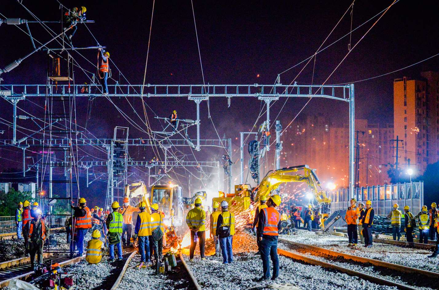 《鏖战在子夜》。2024年5月10日凌晨,千余名建设者奋战330分钟,完成合肥西站京港场设备开通启用。
