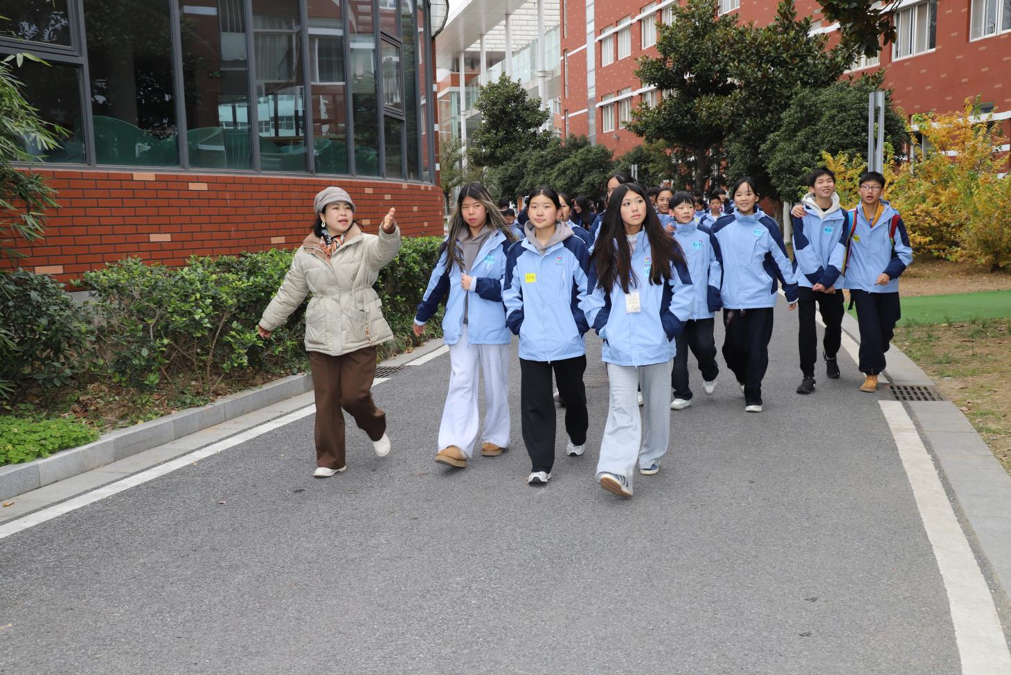 上午9时50分,载着海外华裔青少年的车辆准时抵达学校北门。这群来自澳大利亚、南非、新西兰的年轻面孔带着好奇与期待走下车,与早已等候在此的仙外国高学子热情相迎。