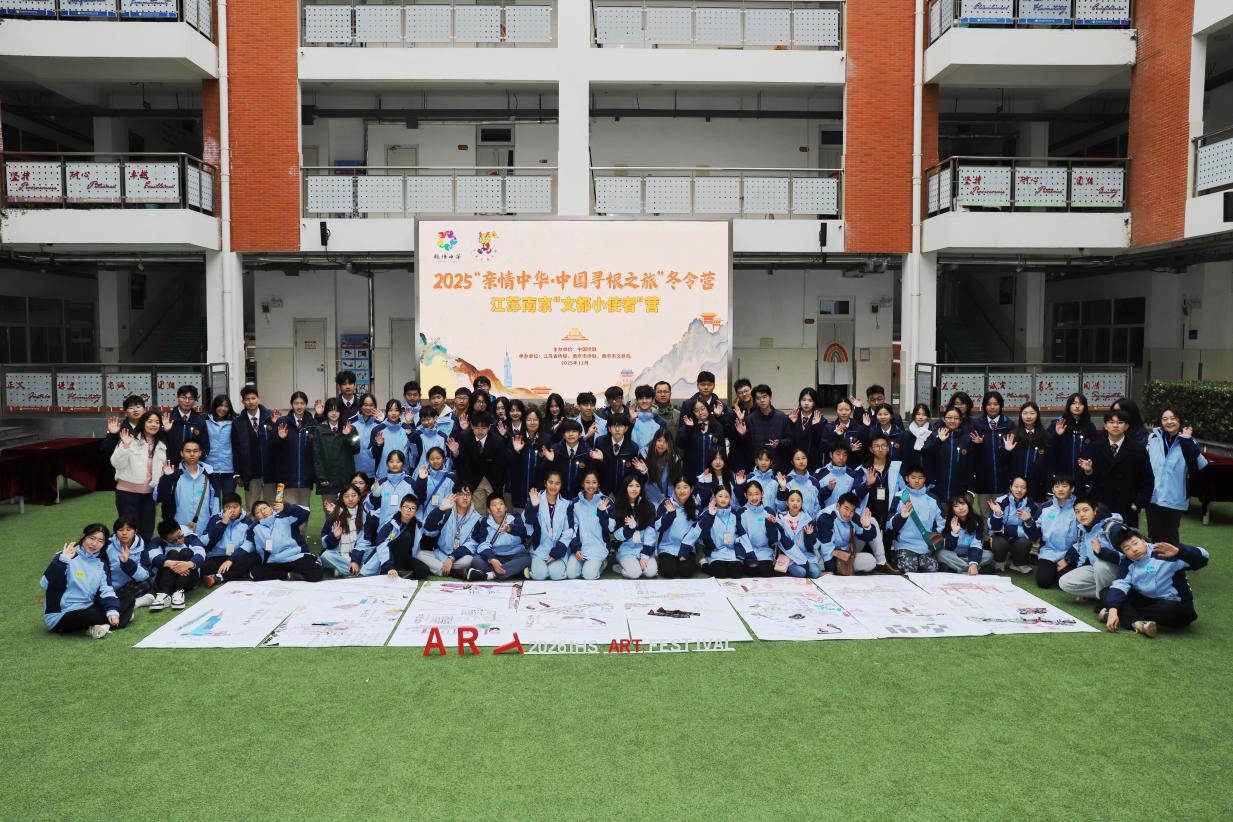 12月22日上午,由中国侨联主办,江苏省侨联、南京市侨联、南京市文旅局共同承办的2025“亲情中华·中国寻根之旅”冬令营江苏南京“文都小使者”营来到南京仙林外国语学校国际高中。一场跨越山海的文化交流在悄然展开,50位海外华裔青少年和领队老师,与南京仙林外国语学校国际高中的师生相聚一堂,共同执笔绘就长卷《我心中的中国城》,画卷以南京地标建筑与人文元素为核心创作内容,以画笔为媒,以色彩为语,共同勾勒“我心中的中国城”。