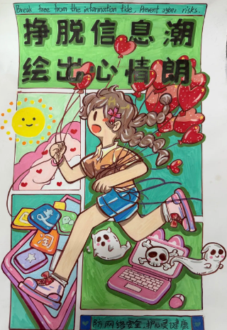 当代码与色彩相遇,当算法被解构成线条——在这场“挣脱信息潮·绘出心晴朗”创作中,“网络安全”不再只是技术术语,而成为同学们探索数字时代心理边界的创作原点。一幅幅作品背后,是青年一代对“安全”的重新理解:它不仅关乎技术防护,更关乎心理的平衡。