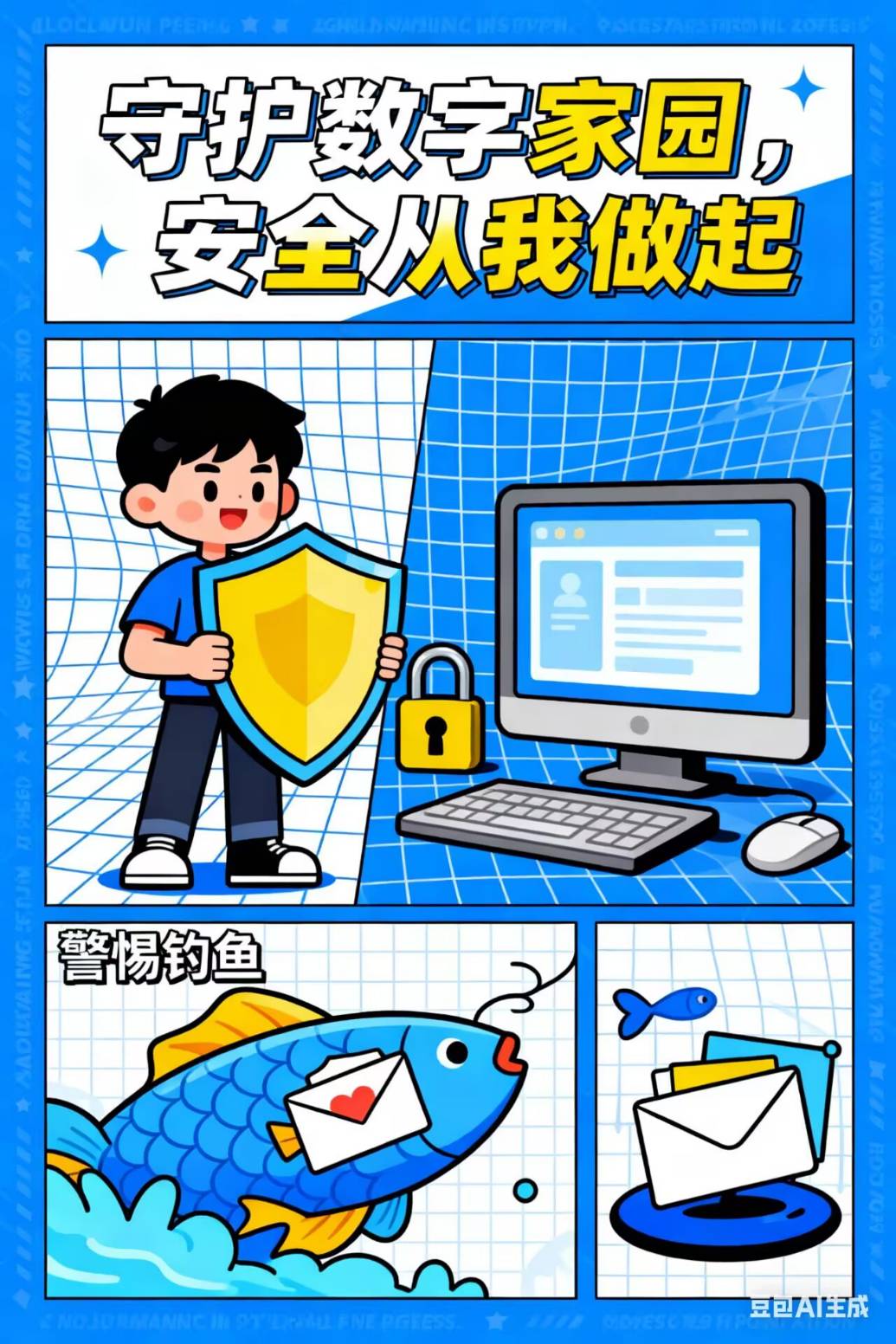 当人工智能技术与网络安全主题激情碰撞,同学们运用豆包、文心一言、即梦等前沿AI创作工具,以独特的艺术视角诠释网络安全内涵。将抽象概念转化为生动画面:有的用赛博朋克风格描绘网络陷阱,有的以水墨动画倡导文明上网……每一幅作品都是对网络安全的独特诠释。这些作品不仅是技术与艺术的完美融合,更是青年学子对建设网络强国、数字中国的深刻思考与创新实践,彰显了新时代青年以科技创新服务国家发展的智慧与担当。