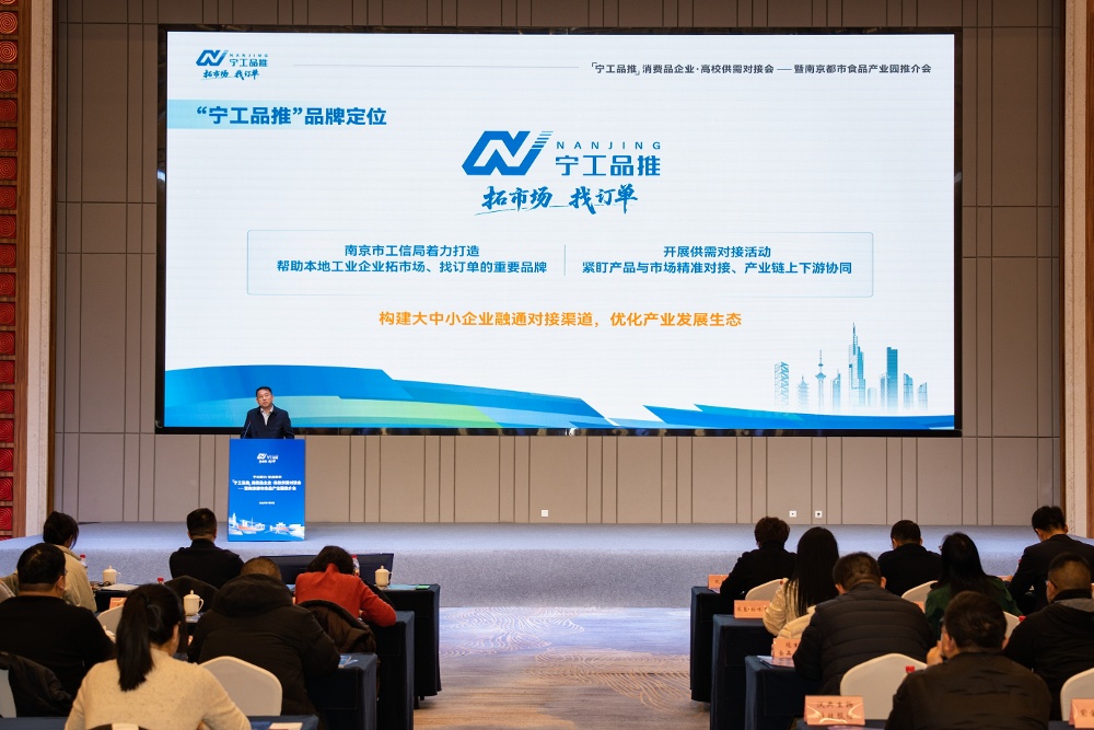 1月9日,“宁心聚力·优品推享”——“宁工品推”消费品企业·高校供需对接会暨南京都市食品产业园推介会在南京市高淳区成功举办。记者从会上了解到,南京市工信局目前正推进“宁工品推”直播基地建设,计划于2026年建成50个直播间,推介30家以上本地企业,带动100个以上优质单品销售,持续提升南京本地品牌影响力。