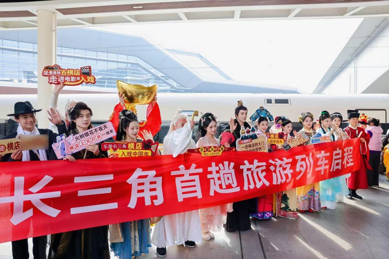 从上海虹桥站、南京南站,再到此次苏州南站,“乐游长三角”影视旅游列车自2025年6月29日首发以来已开行三趟,覆盖长三角三大核心城市。通过持续升级的“沉浸式高铁剧本杀”玩法,愈加精细化的体验叙事精准触达高潜力、高品质客群,成为横店目的地形象的流动展示长廊,助推长三角文旅统一大市场建设,深度融合“高铁+影视+旅游”,打造沉浸式旅游新场景。
