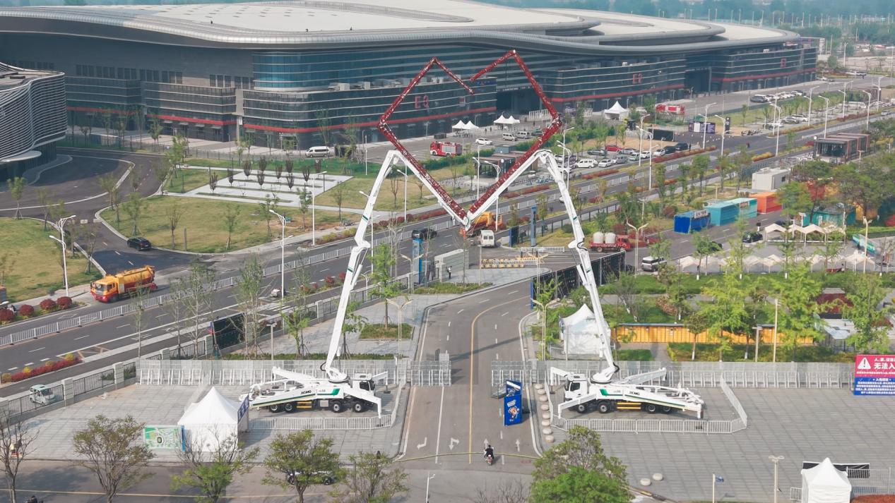 然而,比这场酣畅淋漓的胜利更早刷屏的,是赛场外的一道硬核风景——两辆徐工混凝土泵车舒展长臂,在高空精准地勾勒出巨型爱心图案,臂架间点缀着满满的红玫瑰,被网友称为“钢铁巨兽的浪漫比心”。这份徐州特有的“硬核浪漫”,在社交媒体上引发热议,将“工程机械之都”的气魄展露无遗。