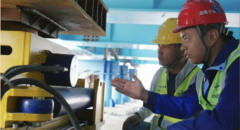 在申张线大桥钢桁梁顶推施工中,青年突击队成功应用二航局原创、江苏省内首次落地的“步履式顶推工艺”,实现全过程位移控制精度达±1.2毫米,获江苏省交通工程专家高度评价,树立省内钢桁梁顶推新范式;为攻克箱梁预制长度误差难题,青年工程师自主发明“梁长观测标尺”装置,将测量误差精准控制在±2毫米以内,施工效率提升10%;更以“无方案不施工”为铁律,由青年主导编制、优化36项关键技术方案,开展“方案回头看”12轮,动态升级承台基坑开挖等4项核心工法,并依托20余场“每周技术讲堂”覆盖150人次,构建起“学习—实践—创新—再学习”的青年技术闭环生态。