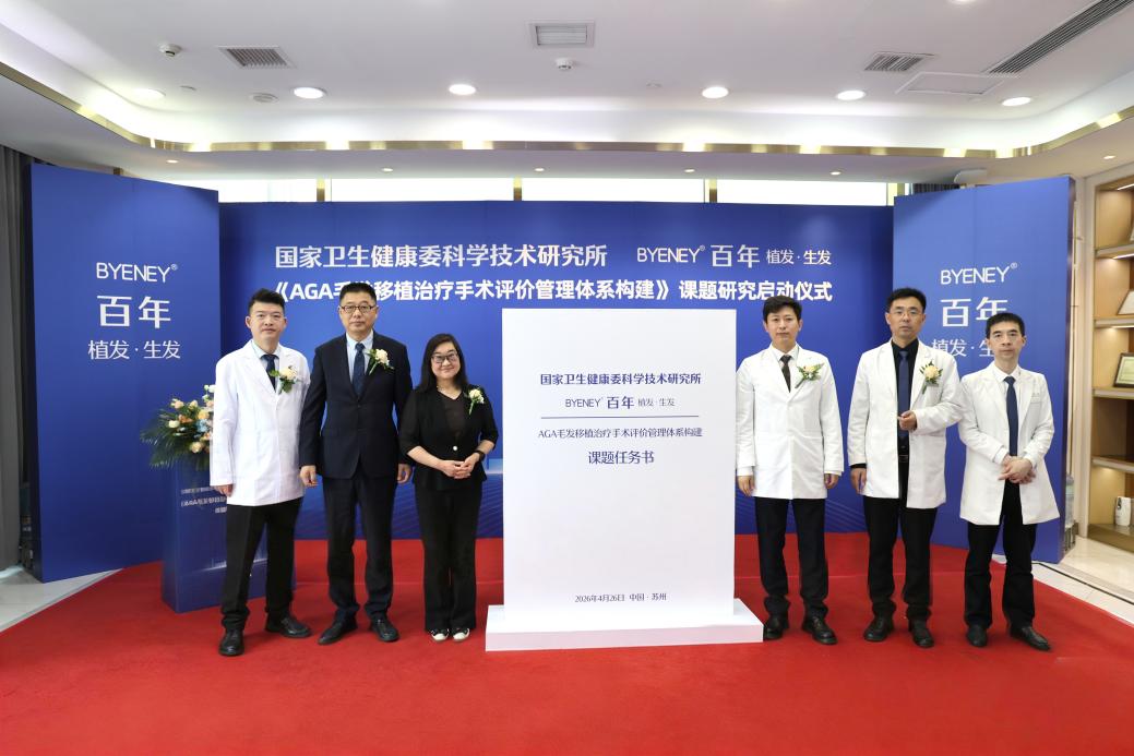 4月26日,《AGA毛发移植治疗手术评价管理体系构建》课题研究启动仪式在苏州举行。该课题由国家卫生健康委科学技术研究所与百年植发·生发共同开展,旨在填补国内毛发移植手术质量管理领域的标准空白。