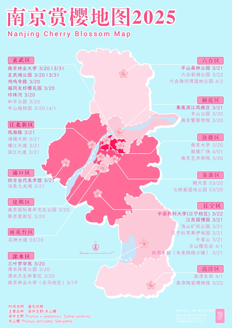 南京林业大学生命科学学院樱花研究中心科研人员提供的《南京赏樱地图2025》