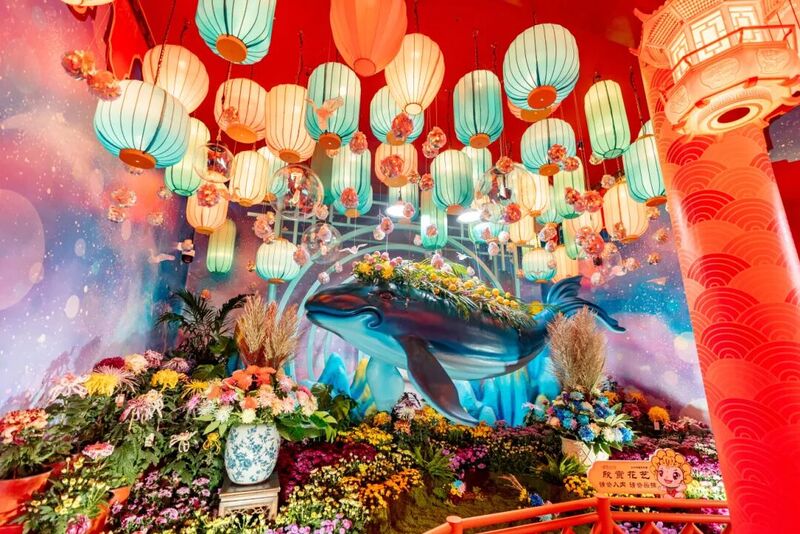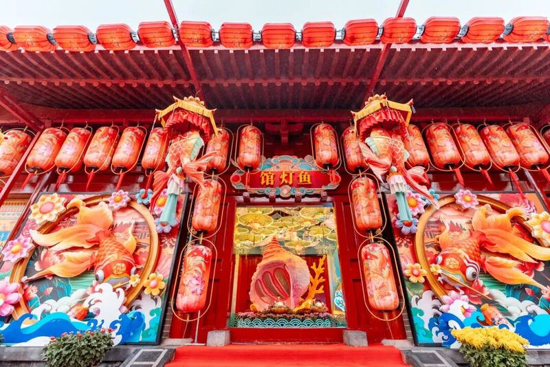 鱼灯馆以菊花为媒,构建奇幻的海底童话世界,融合海洋生物元素与童趣景观,打造沉浸式浪漫体验,传递自然奥秘与想象之美,仿佛让人置身于一个梦幻般的海底王国。