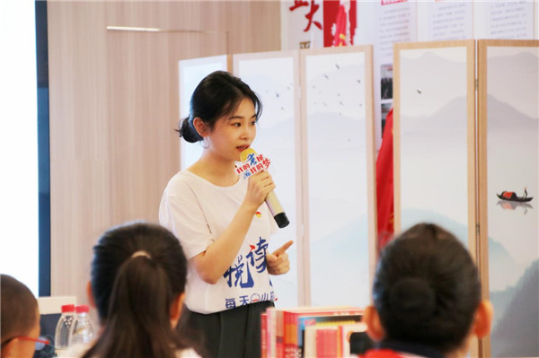 活动以分享经典故事为主线,充分发挥农家书屋文化阵地作用,厚植青少年爱党爱国情怀,让孩子们在活动中感受阅读的魅力,感悟力量,传承血脉,助力健康成长。活动现场,全国乡村阅读榜样金辉老师带着石港小学的孩子们,精彩演绎情景剧《听爷爷讲党史》。石港烽火故事宣讲员张瑜为孩子们生动讲述《睹史院平暴始末》,感受睹史院的革命岁月。孩子们也不甘示弱,争先恐后地上台朗诵《小英雄雨来》等故事,气氛一度推向高潮。农家书屋管理员张天梅给孩子们介绍了暑期必读书目《可爱的中国》。