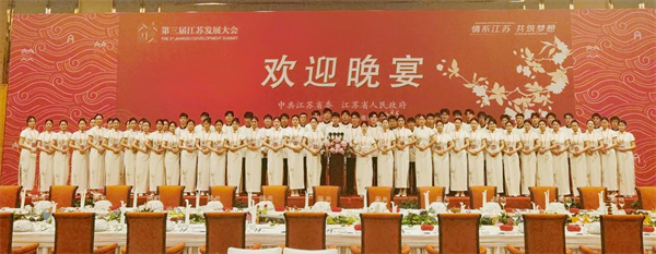 中国江苏网讯 (通讯员张蔚)5月20日,主题为“情系江苏,共筑梦想”的第三届江苏发展大会在南京开幕,1300多名来自海内外、省内外的乡贤嘉宾与会。南京旅游职业学院共派出300名学生志愿者,圆满完成宴会餐饮制作、会议接待等志愿服务工作,受到大会组委会和与会嘉宾的高度赞誉。