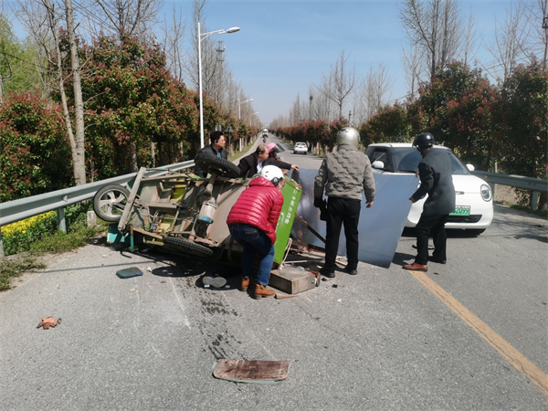 3月29日上午11点25分左右,赵恒琴驾驶机动三轮车行走在东台市五烈镇廉广公路仙河境内时,由于操作不当,三轮车突然侧翻,人被压在车身下,无法动弹,仙河村网格员胡克峰、周小凤立即赶往出事现场,只见压在车下的驾驶人赵恒琴面部多处出血、脸色苍白,不停地痛苦呻吟。
