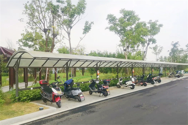 这批智能充电桩是在公园停车场内现有非机动车停车棚上进行重新布线、安装,可供40辆电动自行车同时充电。