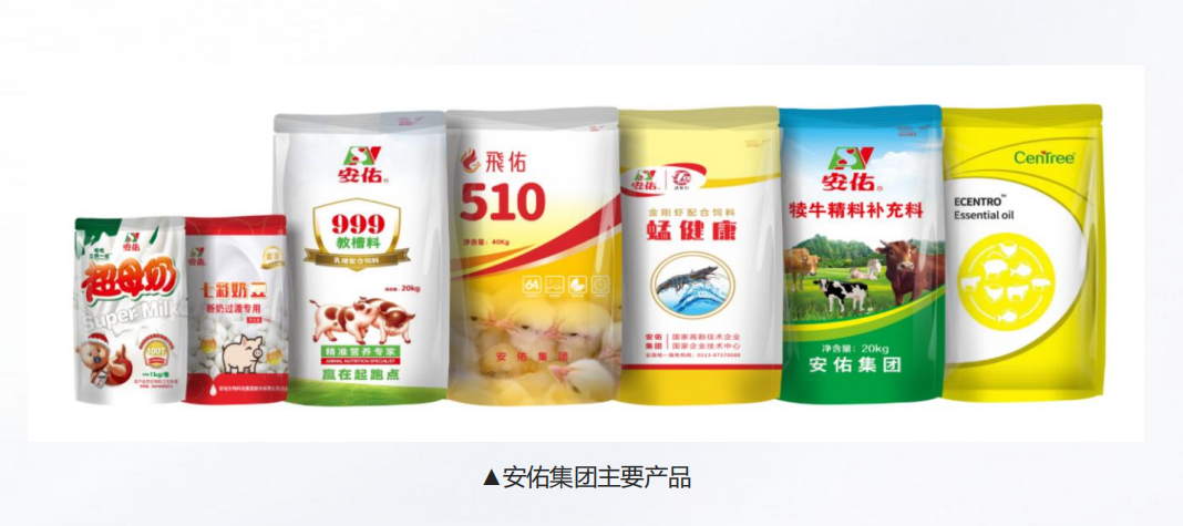 安佑生物科技集团股份有限公司成立于2009年,以饲料研发、生产为核心业务,产品涵盖猪饲料、水产饲料、禽饲料和反刍饲料,延伸至绿色添加剂、饲料原料、农业物联网等领域。公司建有国家企业技术中心、国家博士后科研工作站,参与制定国家、行业和地方标准共7项,拥有专利137件。