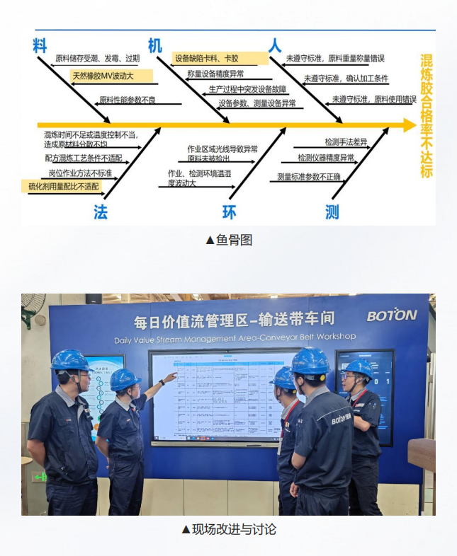 通过成立跨部门QCC小组,采用PDCA循环推进改善。开展源头管控,与供应商签订技术协议,建立门尼粘度≤65的入厂检验标准;引入自动计量设备精准控制硫化剂添加,加装防脱落装置规范翻包流程;制定定期巡检保养计划,安装智能监测系统实时预警;运用鱼骨图、柏拉图、双样本T检验等工具,以数据驱动锁定核心要因并验证改善效果。