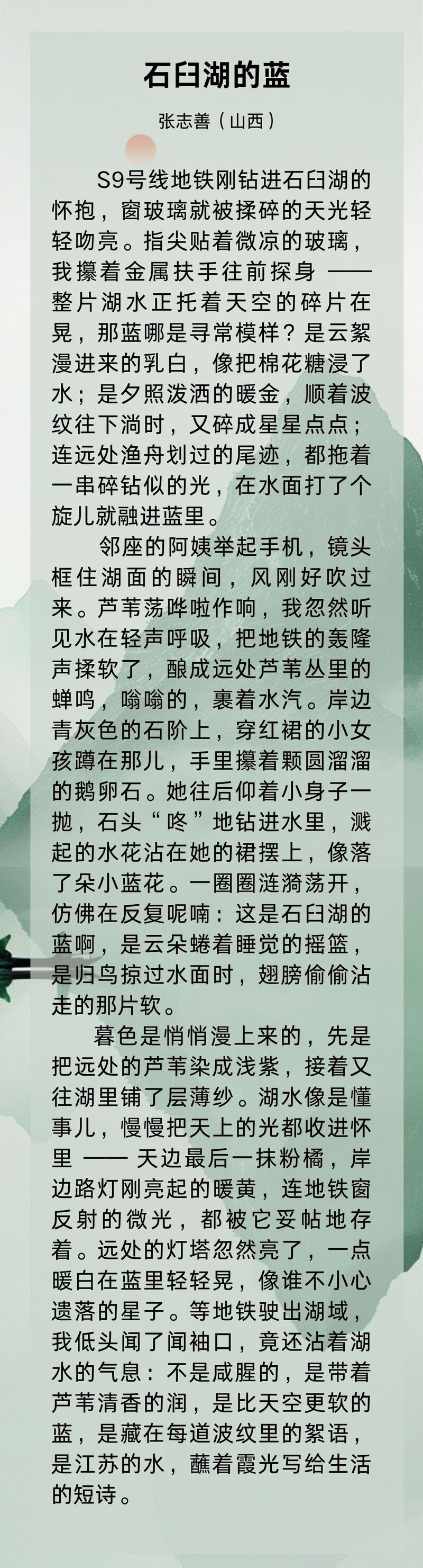 自“身边的幸福河湖”诗歌摄影有奖征集活动启动以来,组委会收到了来自江苏、陕西、江西、山西、浙江、广东、湖南、河北、四川等全国各地的诗人来稿。