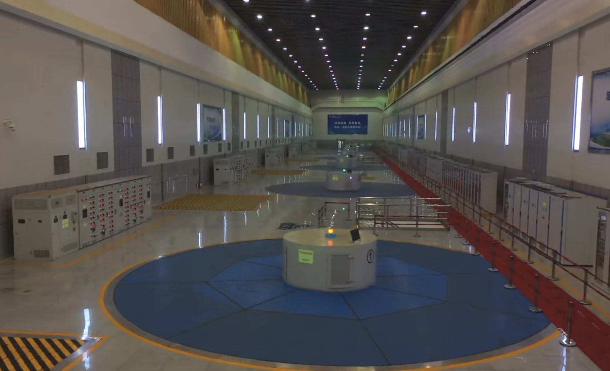 水库看似平静,水下却“蓄”势待发。真正的搏动,来自地下220米深处。驱车驶入山体内部,穿过蜿蜒的隧道,一个高度相当于20层楼的地下厂房豁然出现在眼前。6台巨型机组平稳运转,机组内转轮叶片飞速转动,仪表盘上指示灯规律闪烁,机器声轰鸣,仿佛“能量心脏”在有力跳动。