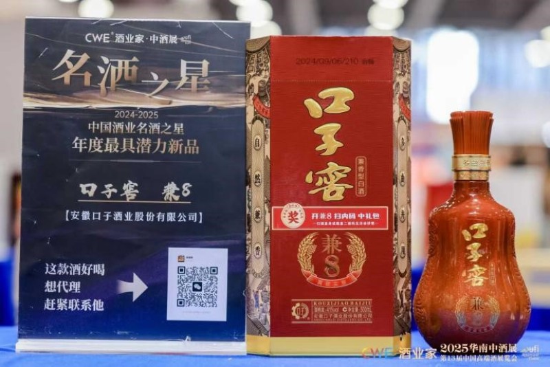 近日,第13届中国高端酒展览会(华南中酒展)在广州盛大启幕。口子窖兼8凭借卓越的产品力与创新基因,从众多参选品牌中脱颖而出,斩获“2024-2025中国酒业名酒之星年度最具潜力新品”大奖。