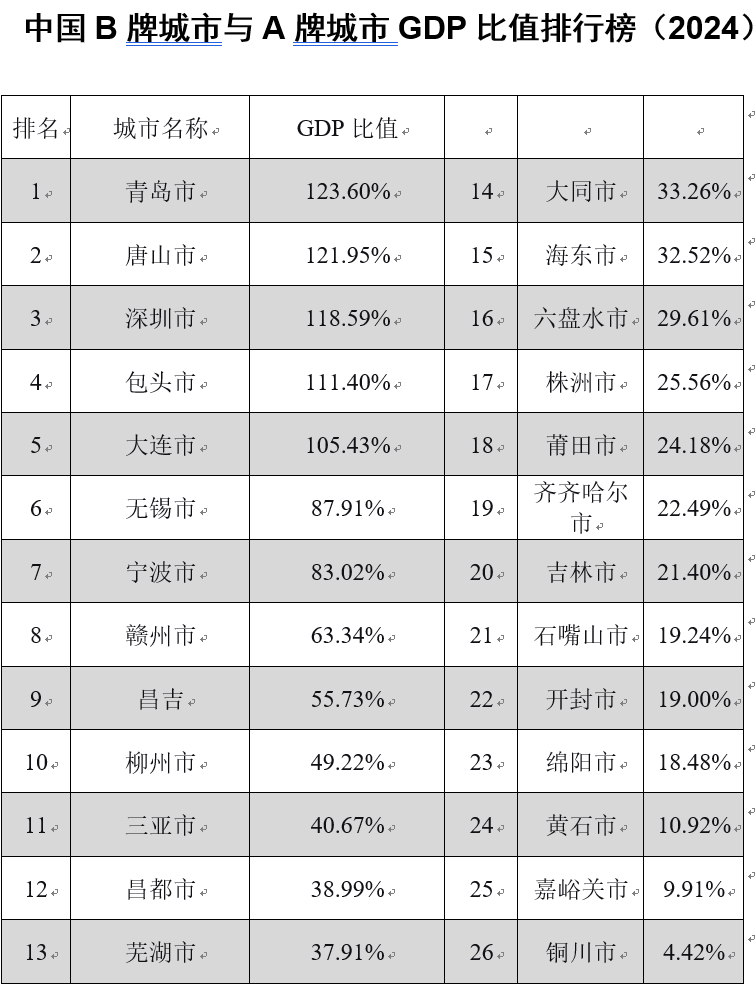 B牌城市作为中国省域范围内的城市类型。在上世纪80年代分号之初,都赋予了较为重要的“副中心城市”地位,但随着改革开放和市场经济的发展,城市发展进入了“锦标赛”周期。一批B牌城市抓住机遇,精准定位,及时发力获得了较快的发展,有些甚至超过了A牌省会城市。但是,更多的B牌城市由于被省会中心城市一城独大的高首位度发展模式影响,同时没有抓住城市改革和转型的机遇期,逐步落后,被C牌、D牌,甚至G、H牌城市超越,成为名不副实的B牌城市。