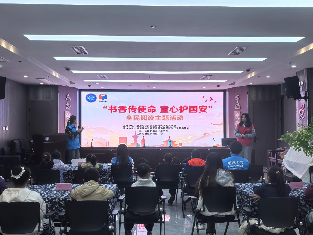 在全民国家安全教育日来临之际,为传承红色基因,厚植青少年国家安全意识,引导青少年树立“国家安全,人人有责”的理念,崇川经济开发区新时代文明实践所、盘香沟社区新时代文明实践站联合一二一心翼护航亲子服务社、江海心悦健康公益中心,举办“茉莉花开·艺通江海”暨“书香传使命 童心护国安”全民阅读主题活动,让青少年在沉浸式体验中感悟红色精神、研习安全知识、筑牢国家安全思想防线,在心中播下守护家国的种子。