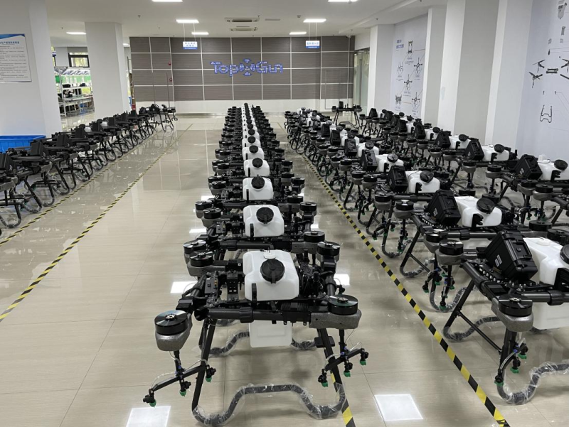 在生产车间里,一排排农用无人机在生产线上等待下一步组装。“我们最新款的农用无人机拥有80升的料箱,能够轻松载着70公斤的料箱飞上几十米的高空。”张羽向记者介绍。拓攻无人机经历几次技术迭代,已经能够实现自动驾驶、一键返航、路线规划、智能避障等功能。目前,拓攻的系列农业无人机在集成智能测绘、精准施药等功能上实现了核心技术突破,单机日作业面积可达2000亩,累计服务农田超1亿亩。