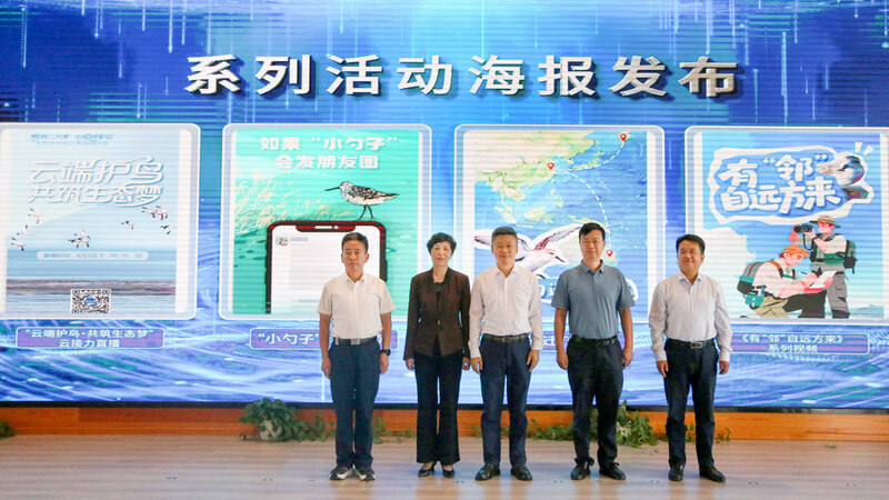 今年,“鹏程三万里 小爱回家记”生物多样之美融媒行动延续生物多样性保护的主题,将以勺嘴鹬为纽带,开展多项重点活动,实地探访勺嘴鹬的停歇地与越冬地,全方位报道“绿水青山就是金山银山”在江苏、中国的生动实践。活动现场,点亮“翼启征程 同心护‘迁’”勺嘴鹬全球迁徙地图,并发布了“云端护鸟·共筑生态梦”云接力直播、“小勺子”科普系列、“我的迁飞日记”、《有“邻”自远方来》系列视频等多项融媒产品的系列海报,以多样视角诠释生命共舞的精彩。