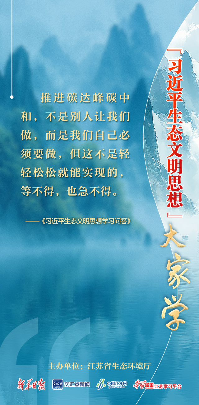 为深入学习宣传贯彻习近平生态文明思想,认真贯彻落实习近平总书记对江苏工作重要讲话精神,即日起,江苏省生态环境厅联合新华日报·交汇点新闻,共同推出《“习近平生态文明思想”大家学》学习海报,每日一期,引导全省干部群众牢固树立生态文明价值理念和行为准则,让绿水青山不断变成金山银山,在人与自然和谐共生中,加快推进中国式现代化。