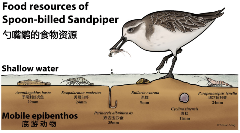 条子泥是勺嘴鹬最大的栖息地和最为重要的补给站,一年有5个月勺嘴鹬都会在这里生活。条子泥为什么能留住勺嘴鹬?食物是非常关键的一环。