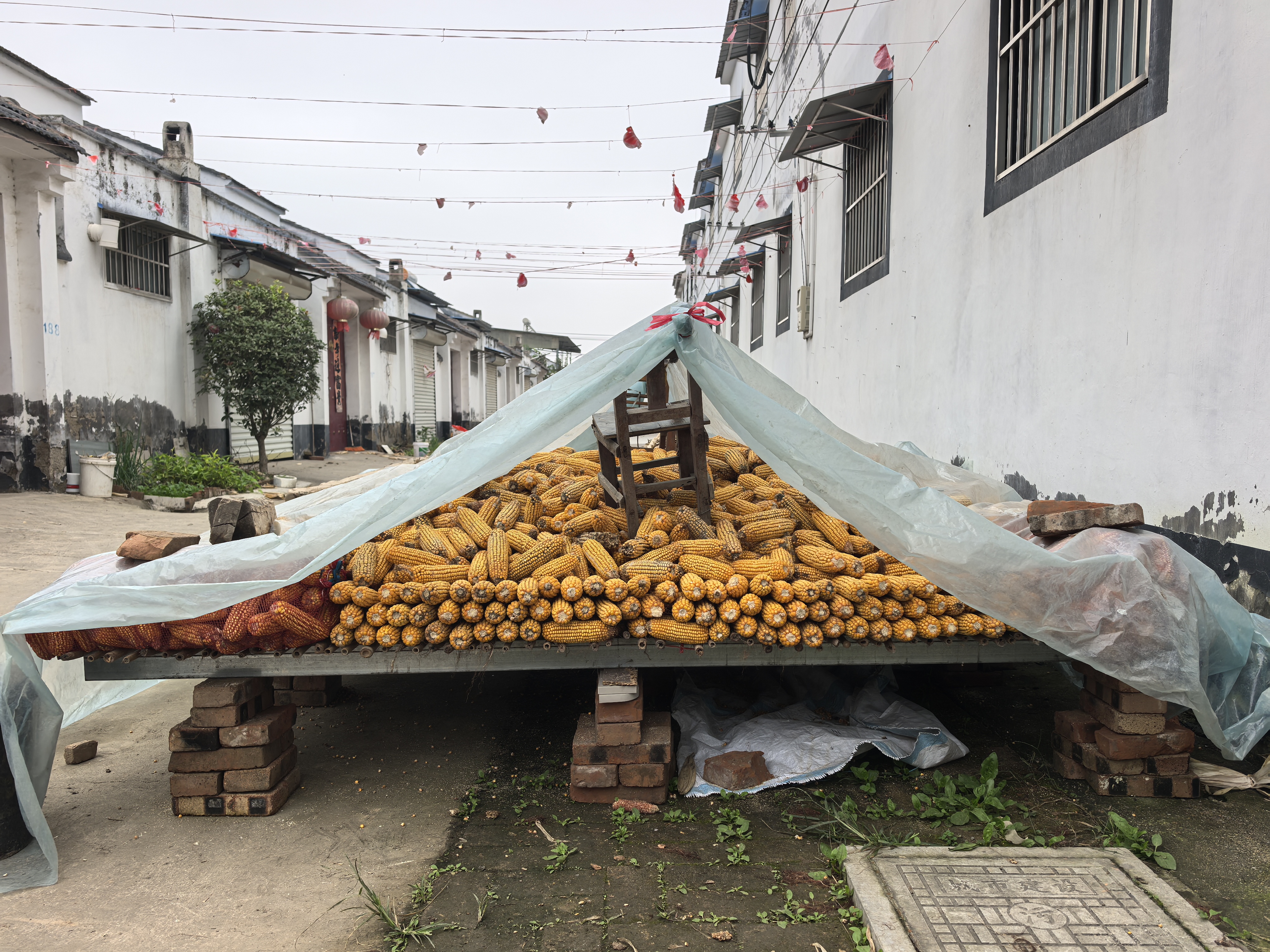 在孔令杰看来,收割只是第一步,储存是更大的难题。没有晴好天气,收回来的玉米无处晾晒,极易发霉。“玉米霉变后会不能食用,也不能加工饲料,所以价格很低。”在淮北地区的农村,他看到农户们通过垒晾晒台、搭塑料棚等方式给玉米“透气”。“农户们都在‘各显神通’,但雨水实在太多,空气湿度太大。”