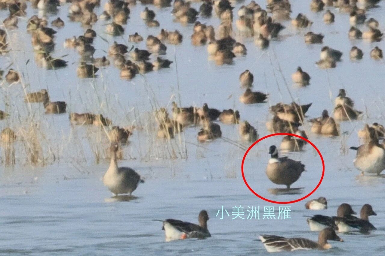 交汇点讯(记者 徐春晖)眼下,正值候鸟迁徙关键期,盐城市观鸟协会理事徐行在条子泥720高地开展鸟类调查时,于上万只的雁鸭群中惊喜发现一只头部黑白相间、体型小巧的雁。经南京林业大学鲁长虎教授确认,这是罕见的小美洲黑雁,可能是随雁鸭类大部队迁徙过来的迷鸟。据悉,这是江苏省首次记录到该鸟种,填补了省内鸟类分布的空白。