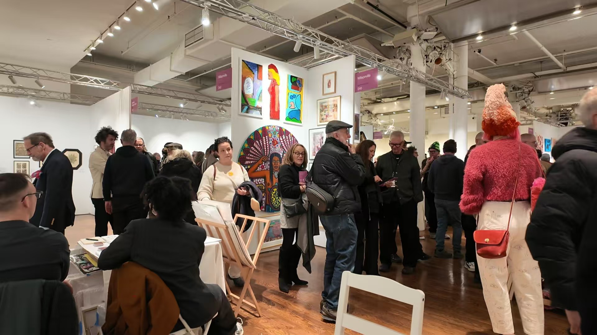 南京原生艺术中心前身为“南京原生艺术工作室”,成立于2006年,是中国第一家专注于以原生艺术的形式为精神障碍患者提供康复服务的民间非营利机构。中心负责人郭海平介绍,此次出国参展,是南京原生艺术中心继2018年远赴巴黎外,第二次走出国门。纽约原生艺术博览会自1993年开展,被视为国际艺术界瞩目的重要文化活动。本次博览会汇聚了近70家来自全球各地的画廊、艺术机构与藏家群体,南京原生艺术中心以“Inner Worlds(内在世界)”为主题,集中展出了陈宝桂、妞妞、乾玮、乔雨龙、许健、杨传鸣、杨旻、牙牙、玥玥9位艺术家的24幅作品。